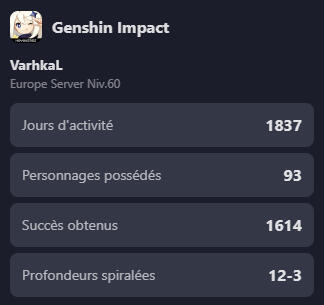 Grâce à mes 5 ans d'expérience de jeu, j'ai acquis énormément de connaissances sur tous les différents aspects (exploration, building, etc.).J'ai également remarqué que de nombreux joueurs (débutants comme avancés) avaient besoin d'aide et de conseils pour améliorer leur expérience de jeu.J'ai terminé le jeu à 100%, exploration, quêtes et succès (jetez un œil à mon Hoyolab ci-dessous ).Donc si jamais vous vous reconnaissez et avez besoin d'aide, je suis là pour vous ! :)‧₊˚ ⋅ 𓐐𓎩 ‧₊˚ ⋅